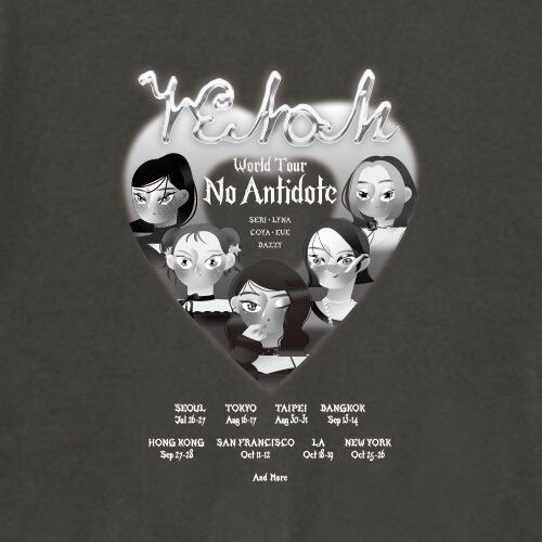 「毒」をテーマに、強烈なビジュアルと中毒性のあるサウンドで世界中のファンを虜にする5人組アイドル "VEN0M"のツアーTシャツ。